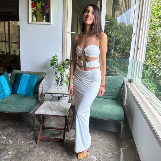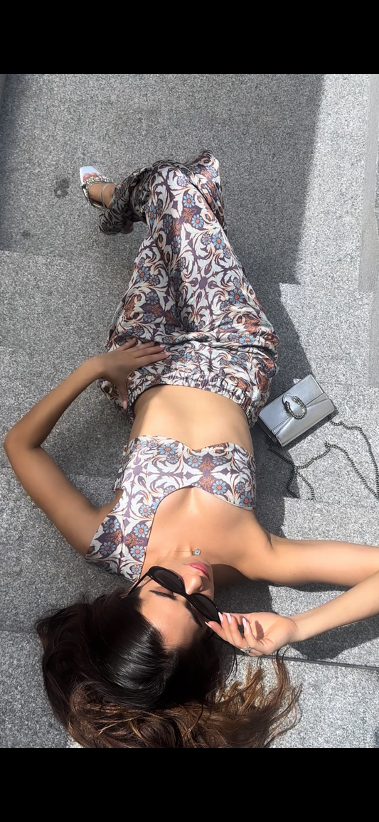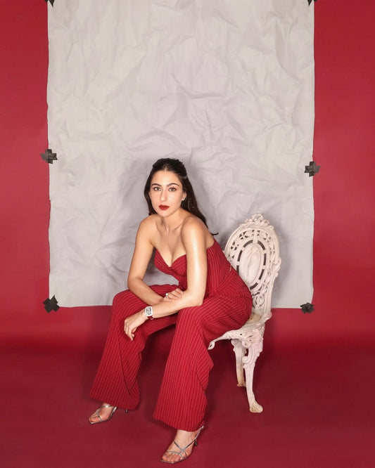 EVE Bustier & Pleated Trousers (Red Pinstripe)