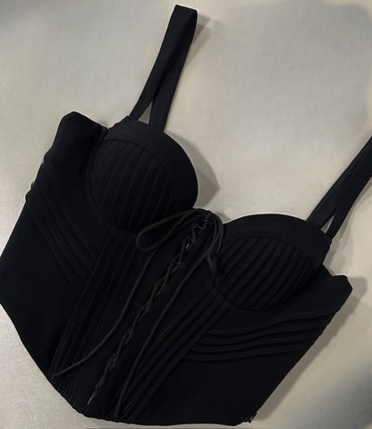 This corset showcases a refined silhouette, highlighted by a drawstring detail. Structured boning offers exceptional support, while the flattering fit beautifully defines your curves. The pleated technique adds depth and texture, and a discreet side zipper ensures effortless wear.