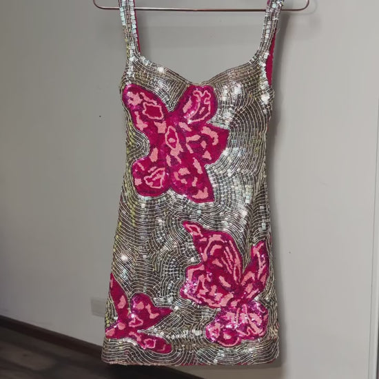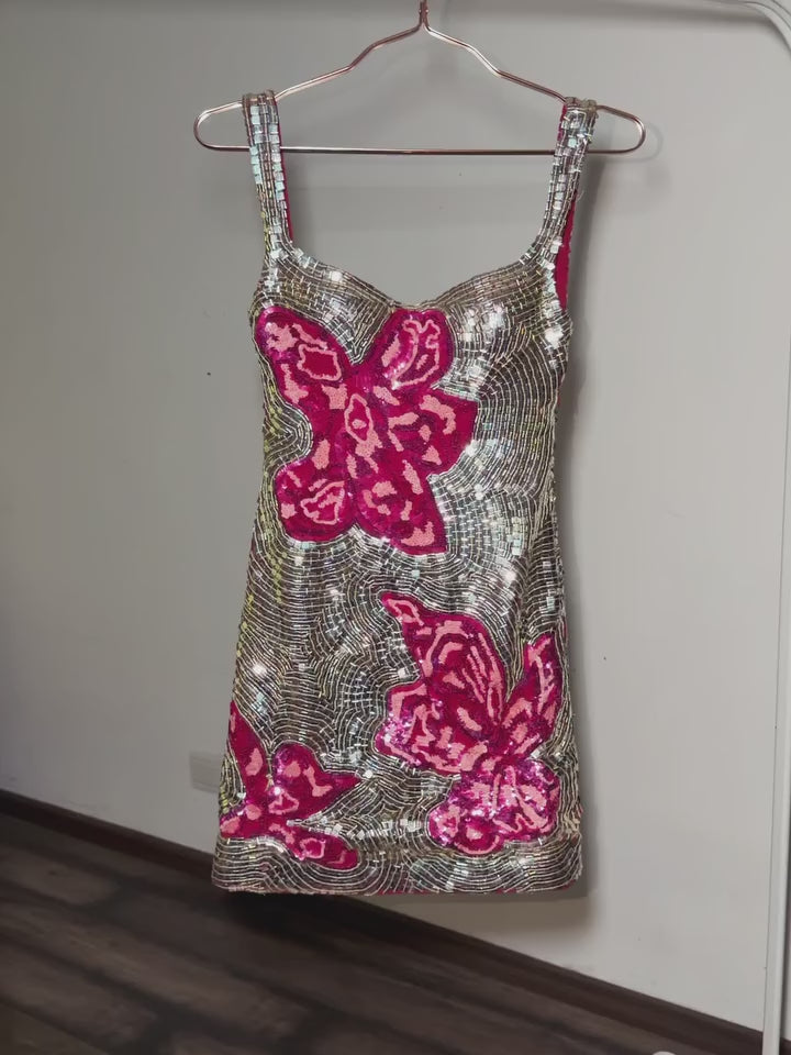 Turn heads in this statement mini dress. Covered in iridescent gold sequins that shift colour with the light, it’s finished with bold pink floral detailing for a look that’s equal parts playful and glamorous. The stretch scuba fabric hugs the body beautifully, creating a sleek, sculpted silhouette while staying comfortable enough to dance the night away.