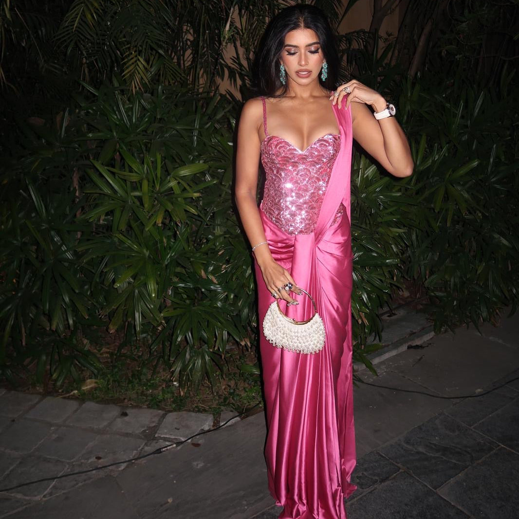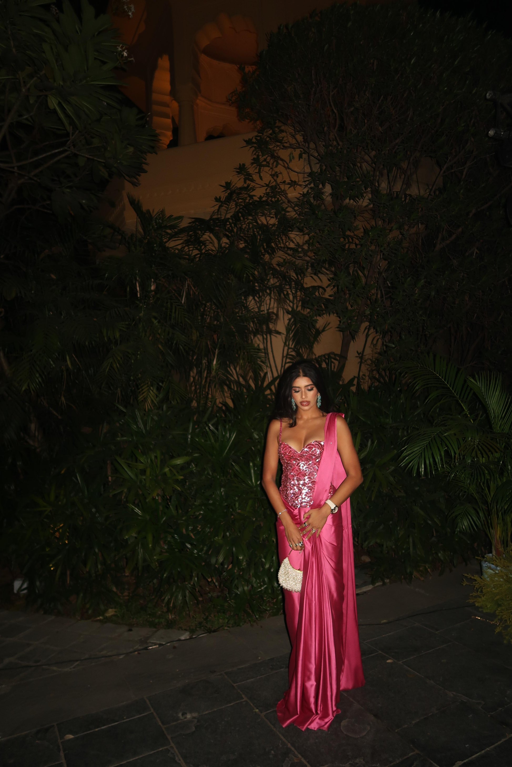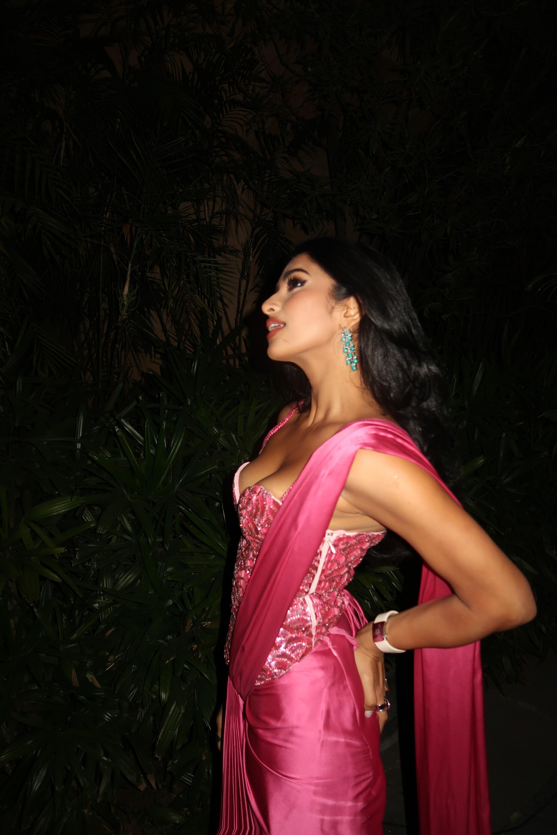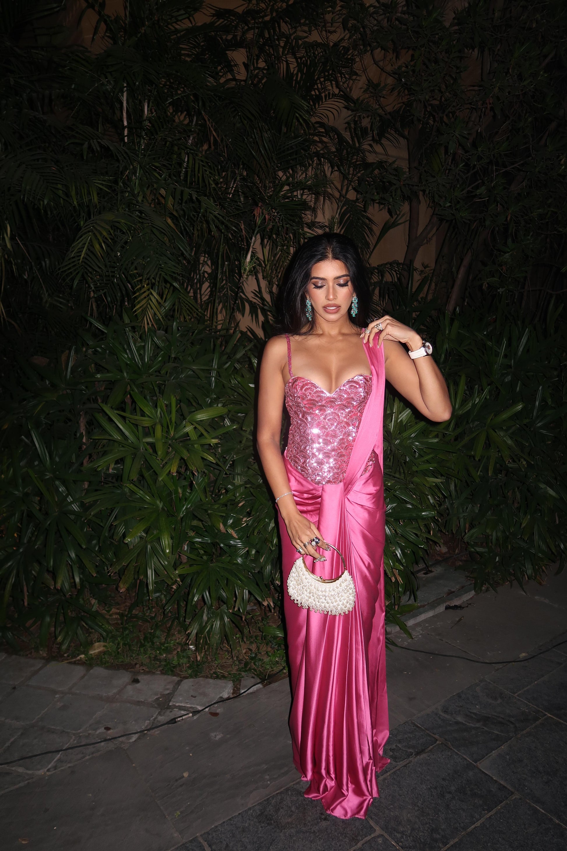This intricately hand-embroidered bustier is crafted from a lustrous satin base, layered with shell-shaped sequin work that catches light with every movement. Whether styled under a sari, paired with high-waisted jeans, or dressed up with a sleek skirt, it instantly elevates any look. With its sculpted fit and shimmering detail, it’s a true head-turner designed to command attention.