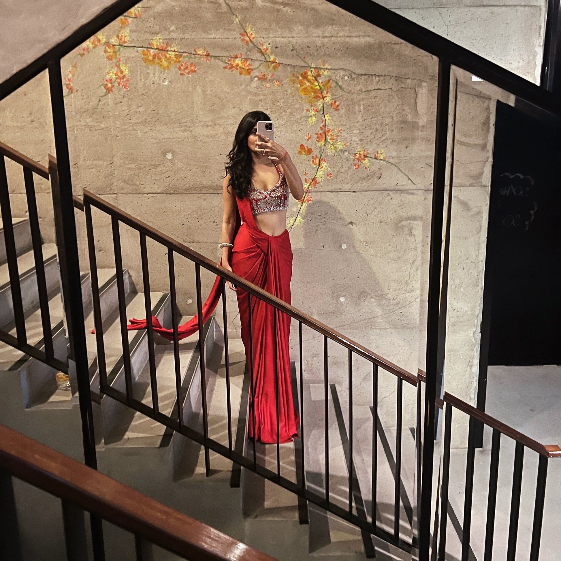Flaunting a scallop edge this blouse features intricate embroidery carefully arranged to create a stunning visual impact. It's a statement piece that effortlessly combines traditional craftsmanship with contemporary elegance.
